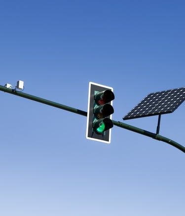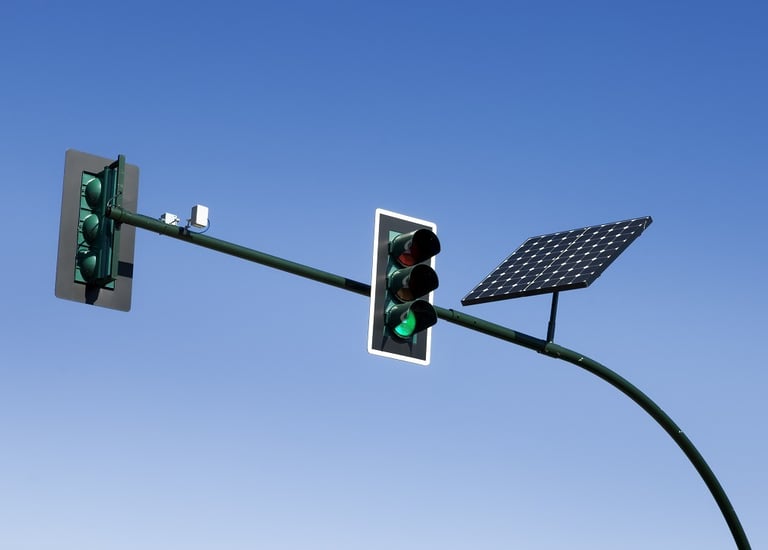 Los paneles en semáforos captan energía solar para alimentar dispositivos urbanos.