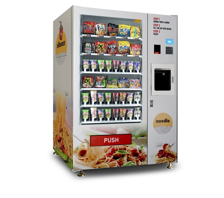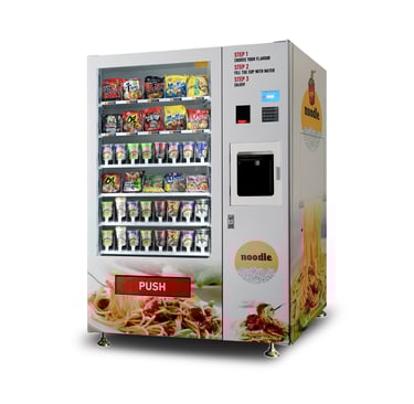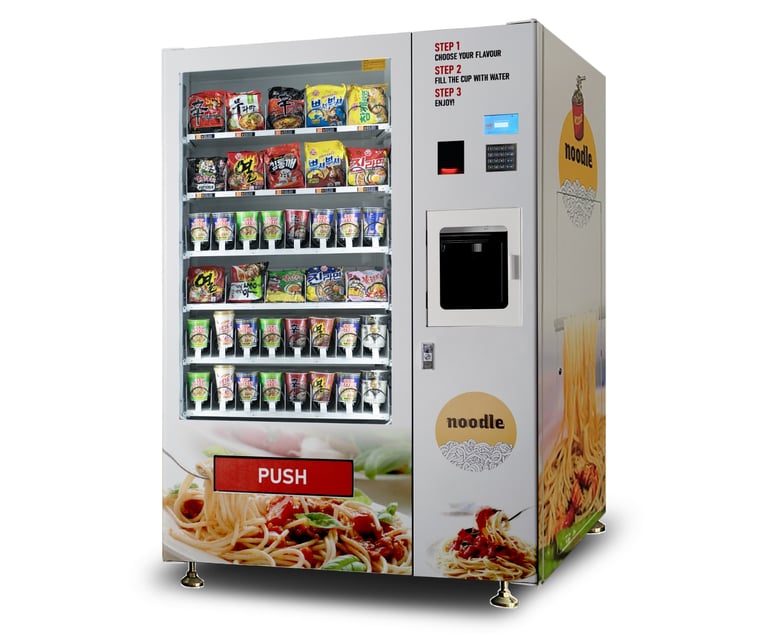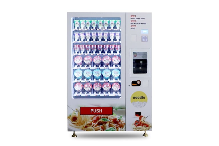 Servicio Rápido: Con un sistema de selección intuitivo, los clientes pueden obtener su Cup Noodle en pocos minutos, ideal para el estilo de vida acelerado de la ciudad.